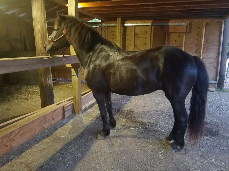 We offer two large paddock approx 100×70 or larger with 12×24 sheds.  Sheds have stone dust floors and rings to hang hay nets.  Each paddock is close to a water source.  Trailer parking is also close to each paddock.  The paddocks are fenced in solid three rail electric fence or round pen panels and rope electric fence.  The first horse is $25, each additional horse up to four are $10 each.  Large paddocks can be cross fenced by you.